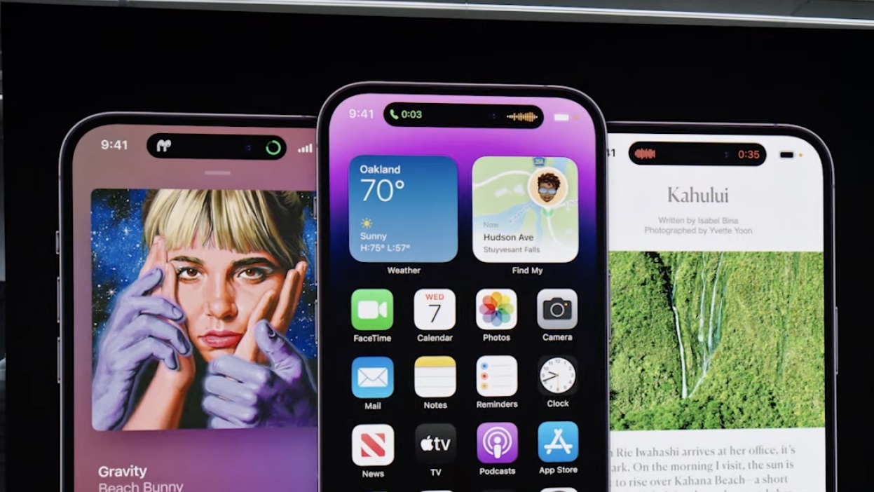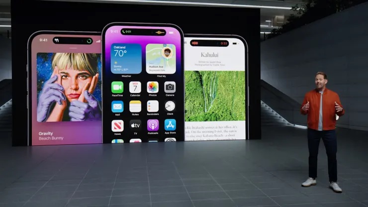 Apple-ın 6,1 düymlük iPhone 14 Pro və 6,7 düymlük iPhone 14 Pro Max modelləri iPhone 14 modelləri ilə müqayisədə daha incə çərçivəyə malikdir. iPhone 14 Pro və 14 Pro Max həmçinin "Dynamic Island" adlı yeni "notch" dizaynı (çentik- telefonun üzərində yuxarı hissədə kamera, mikrafon və sensorların yerləşdiyi sahə) ilə gəlir. Əvvəlki modeldən 30 faiz az yer tutacaq yeni "notch"da istifadəçilərə müxtəlif bildirişlər göstəriləcək. Bənövşəyi rəng seçimi də olacaq iPhone 14 Pro modelləri A16 Bionic prosessoru ilə təchiz edilir.