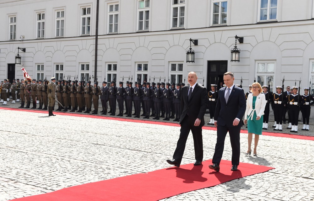 Polşa Prezidenti Andjey Duda Azərbaycan Prezidenti İlham Əliyevi qarşıladı.