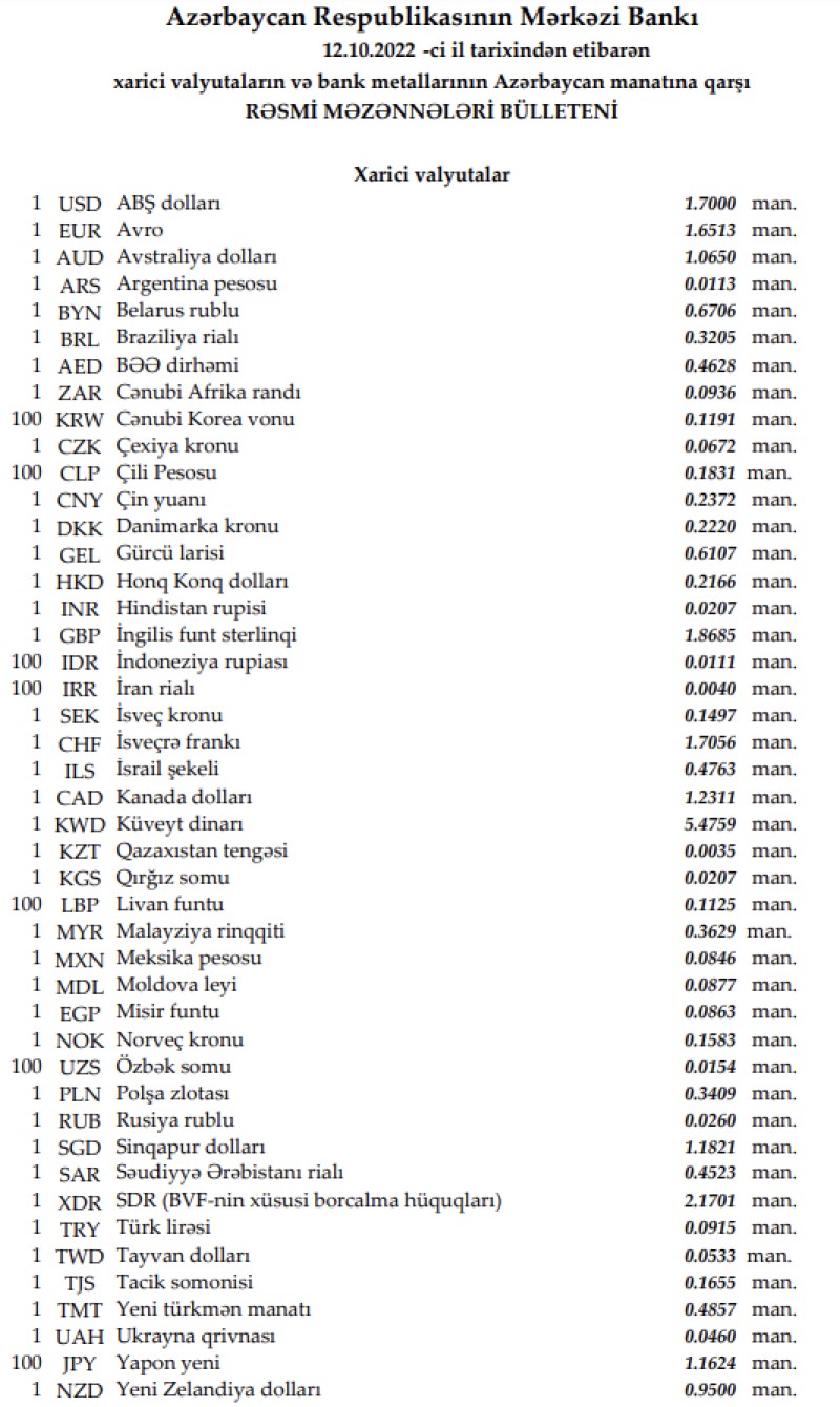 Dolların sabah üçün rəsmi məzənnəsi müəyyən edilib