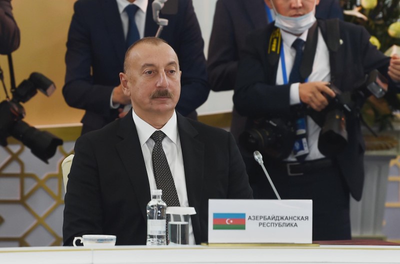 Azərbaycan Respublikasının Prezidenti İlham Əliyev iclasda iştirak edir.
