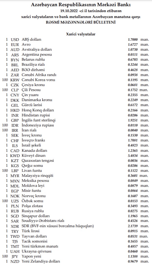 Dolların sabah üçün rəsmi məzənnəsi müəyyən edilib