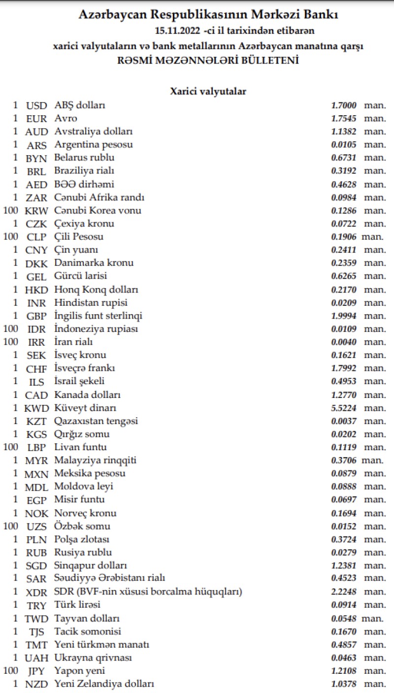 Dolların sabah üçün rəsmi məzənnəsi müəyyən olunub