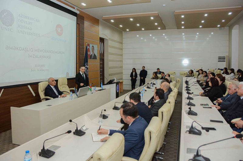 UNEC-in rektoru professor Ədalət Muradov qeyri-neft sektoru üzrə ölkə iqtisadiyyatı üçün önəmli yer tutan “Azərlotereya” ilə əməkdaşlığın hər iki tərəf üçün uğurlu olacağından, bu əməkdaşlığın ölkəyə, eyni zamanda türk dünyasına mühüm töhfələr qazandıracağından əminliyini ifadə edib. UNEC-in real sektorla əməkdaşlığa xüsusi önəm verdiyini diqqətə çatdıran rektor, tələbələrin real iş dünyası ilə daha yaxından tanış olması, karyera imkanlarının artırılması, eləcə də müəllimlərin praktiki bacarıqlarının təkmilləşdirilməsi baxımından əməkdaşlığın əhəmiyyətli olduğunu vurğulayıb.