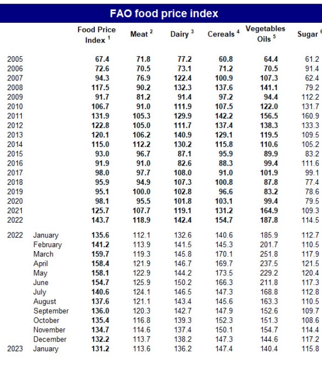 Marja-nın məlumatına görə, FAO-nun bəyanatında qeyd olunub ki, Rusiya-Ukrayna müharibəsi başlayandan sonra indeks keçən ilin mart ayında qeydə alınan rekord səviyyədən təxminən 18 faiz (28,5 bənd) aşağı düşüb.
